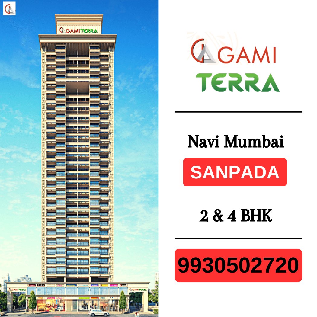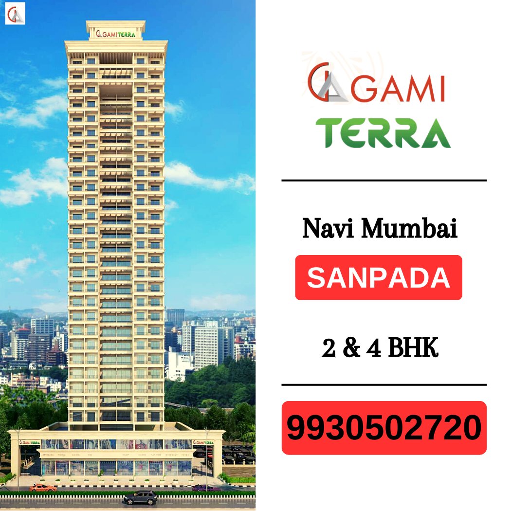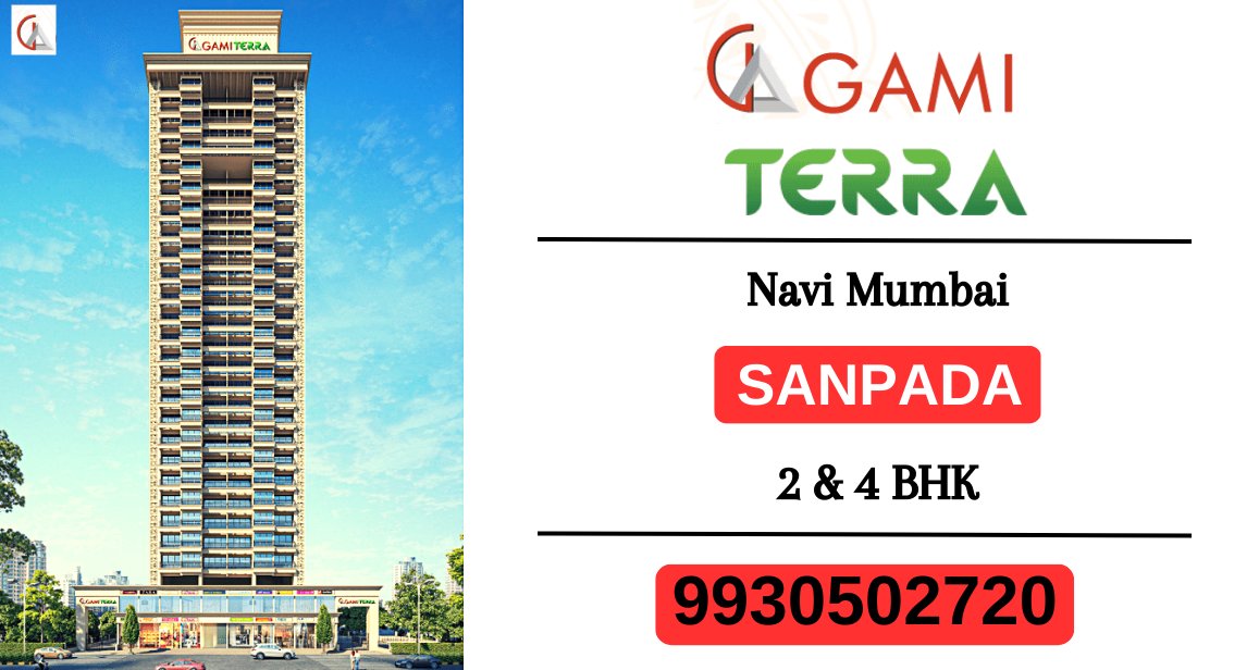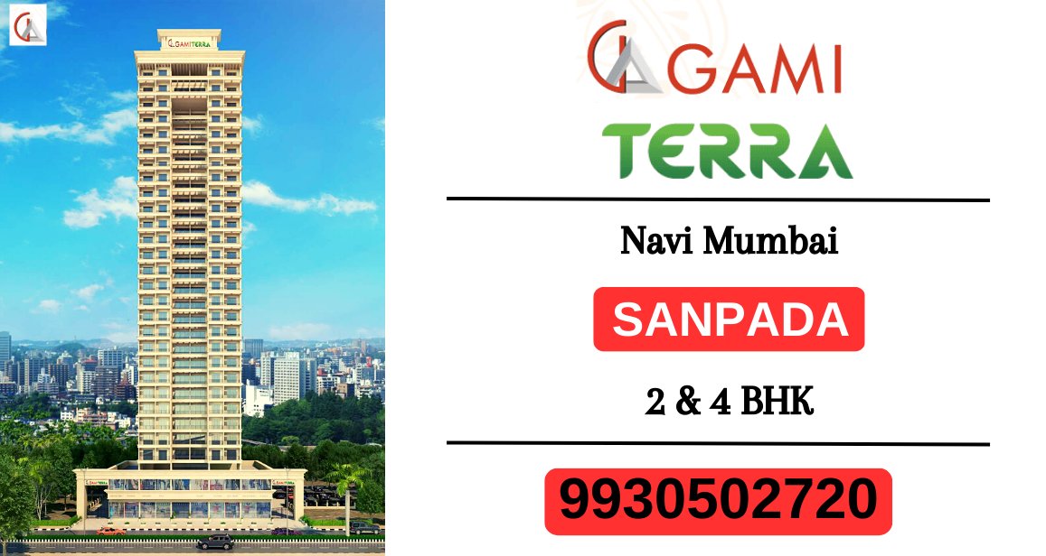 Gami Terra Sanpada, Navi Mumbai is a Project by Gami Group situated in the most premium location of Sanpada, at Sector – 06 Plot no. 45-51 offering 2 & 4 BHK Flats with the availability of Jodi Apartments. Also get Floor Plan, Price Sheet, RERA ID, Reviews, Possession Timeline, Construction Status, Location Advantages, Address, Amenities & Specifications. Gami Terra Sanpada is a Standalone Tower With a floor range of G+26 Storeys. Gami Sanpad Property Features Amenities like. Landscape Garden, Kids' Play Area on the Rooftop, Jogging Track, Open Air Theatre, Sit-outs with Panoramic Views, Swimming Pool with Deck, Toddlers Pool, Well-equipped Gymnasium, Designer Lobby, Ample Parking Space, Hi-Speed Elevators, Sky Lounge, Sky Meditation Area, Senior Citizen’s Area, Relaxation/Yoga Lawn, Air Lounge. Gami Terra has Excellent Connectivity. Hospitals – MPCT Hospital – 4 Mins, Millennium Hospital -1 Mins. School & Colleges – Ryan International School-5 Mins, Western College of Commerce-10 Mins, Delhi Public School-10 Mins. Shopping & Entertainment - Palm Beach Galleria Mall, Inorbit Mall Vashi, Raghu Leela Mall, Grand Central Mall Seawoods, IKEA. Restaurants and Hotels– Hotel Yogi Midtown- 14 Mins, Classic Restaurant and Bar- 1 min, Monginis Cake Shop- 11 min, Mayur Restaurant- 7 min, Italian Mexican Continental Cuisine- 4 min. Mumbai-Pune Highway- 6 Mins, Palm Beach Road- 8 Mins, Dmart Juinagar, Koparkhairne station - 15 mins, Vashi station - 10 mins, Airoli station - 20 mins, Nerul station - 11 mins, Belapur station - 20 mins, Juinagar station - 3 mins, Sanpada station - 4 mins, Banks and ATMS such as HDFC, KOTAK, AXIS, and BOI within walking distance and many more.
